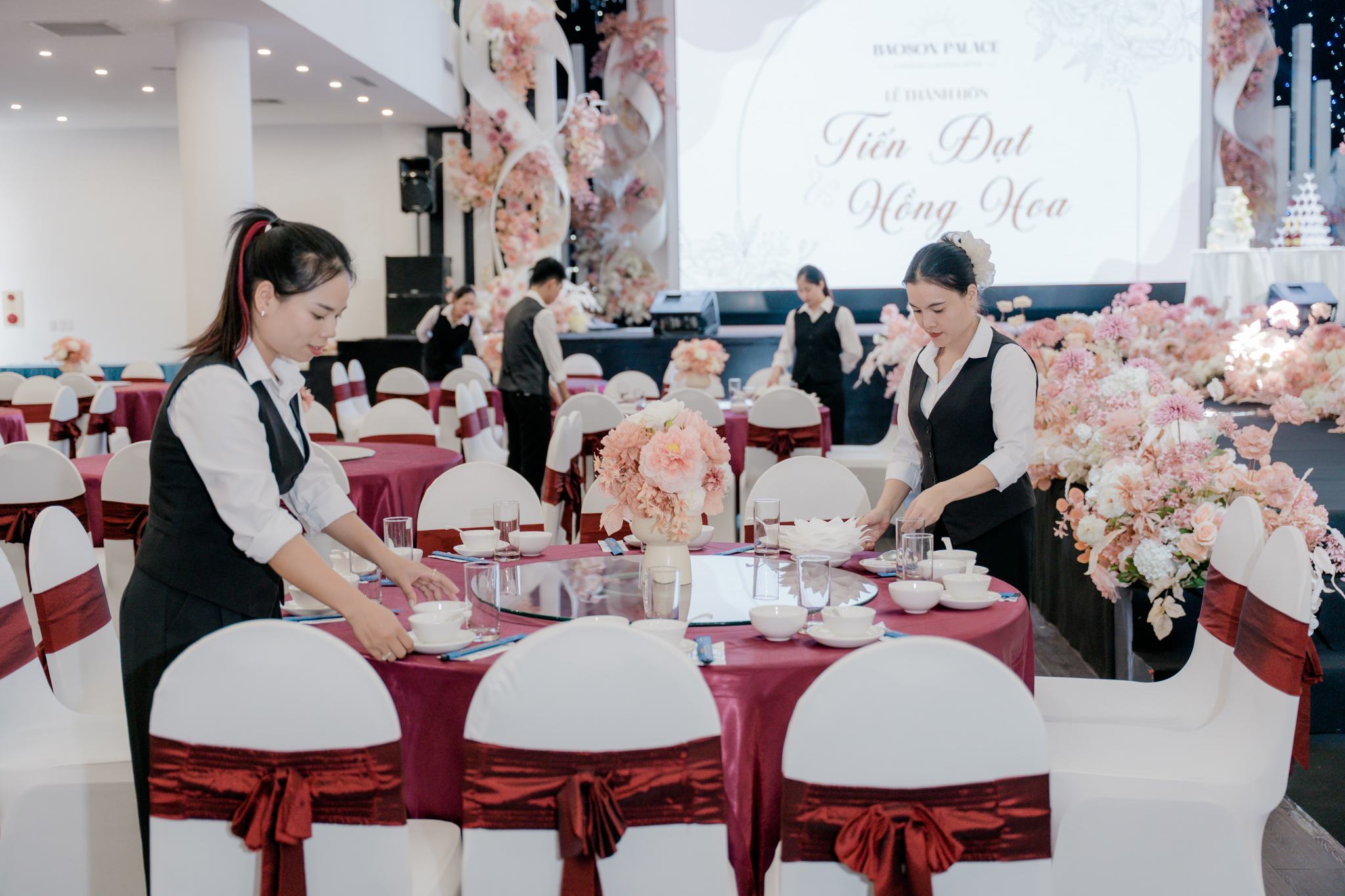 Đội ngũ vận hành giàu kinh nghiệm là điểm cộng giúp tiệc cưới lớn vẫn mượt mà. Từ bước đón khách, phục vụ món đến điều phối chương trình, mọi khâu đều được giám sát chặt chẽ để đảm bảo sự hài lòng của cả hai gia đình.