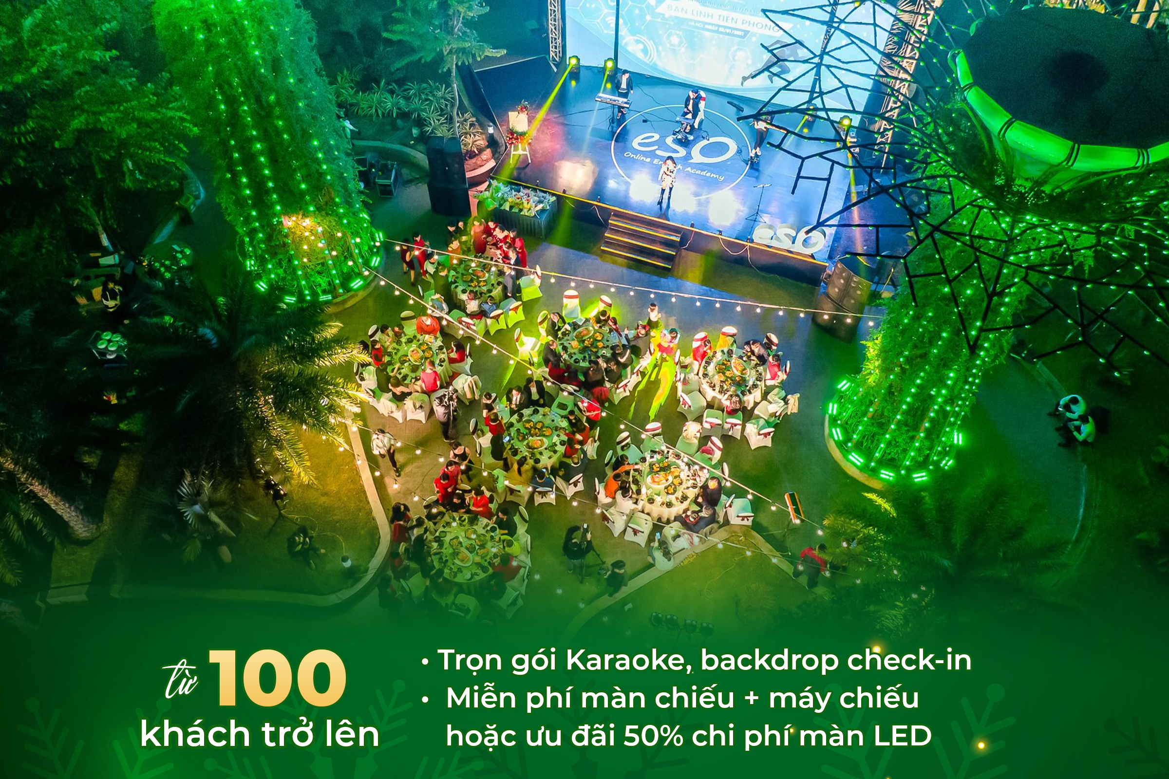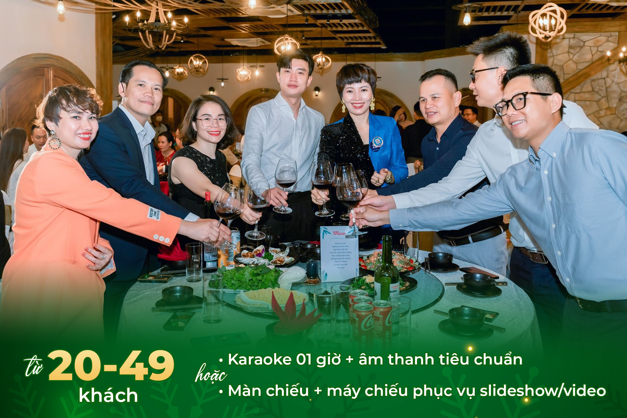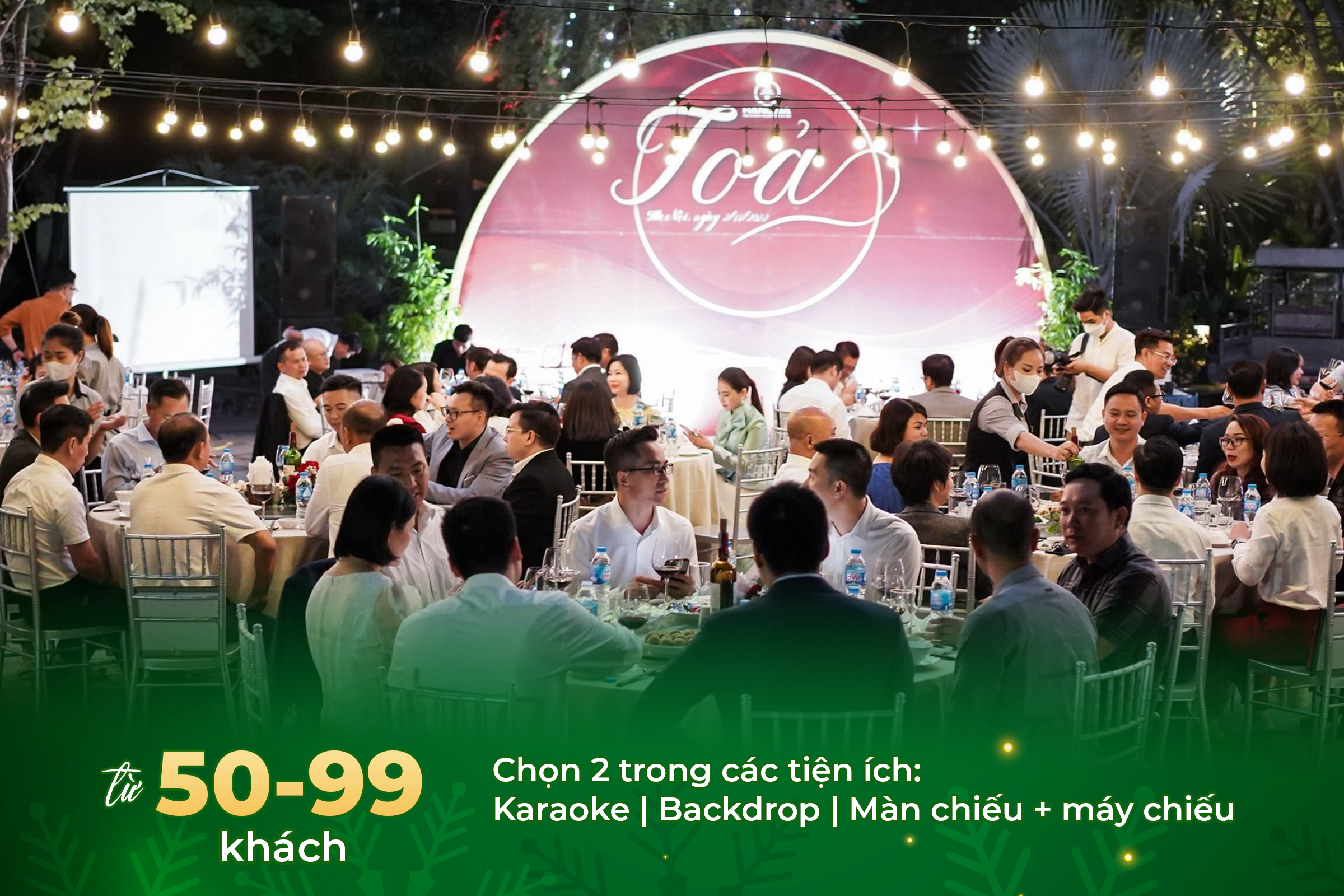 Chọn 2 ưu đãi trong 3 quyền lợi: Karaoke | Backdrop check-in | Màn chiếu và máy chiếu